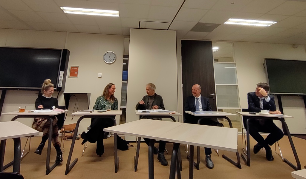 Nadat we woensdag het eerste exemplaar van de publikatie DeFKa 30+ uitreikten aan Gerrit Eerland, namen we op donderdag het concept Universiteit van het Noorden onder de loep. Dat had flink wat gesprekstof tot gevolg. Na de introductie van Gert Wijlage stelden achtereenvolgens de panelleden zich voor: Dick Pouwels, Annemarie Kok, Martin Rasker en Sarike van Slooten (zie foto). Daarna werden gericht vragen gesteld en beantwoord betreffende verschil en overeenkomsten tussen de werkwijze en profiel van de klassieke universiteit en hogeschool. Het samengaan van de noordelijke onderwijsinstellingen binnen de Universiteit van het Noorden (UvhN) bleek nog in de kinderschoenen te staan. Vooral aan de structurele toepassing hiervan in interdisciplinair onderwijs wordt hard gewerkt. Immers de prioriteiten staan duidelijk gemotiveerd in de kennisagenda ‘Drivers of Transition’. Resultaten hiervan, ook naar buiten toe richting sociale omgeving, krijgt op korte termijn meer zichtbaarheid. Assen heeft in zijn ambitieagenda alvast ruimte gemaakt voor grotere studentenaantallen. Het culturele profiel van de UvhN is alleen nog niet voor iedereen helemaal helder. De TechHub biedt zich als Hanze University terdege aan als presentatievestiging. De nieuwe universiteit als zogezegd een transdisciplinaire ‘broedplaats’. Het aandeel hierin van de beeldende sector, vrije en toegepaste vormen van kunst, zou dan intensiever mogen. In het lokale onderwijsveld maar ook op straat, in de stad zelf.
