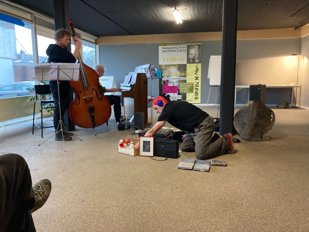 Deze zondagmiddag een hele fraaie, intieme, uitvoering van de Amygdala Sonates/de Rode Bloem gecomponeerd door Hansko Visser op tekst van Vsevolod Garsjin. Het ging om acht sonates over ‘stoornissen’ ingebed in een verhaal over een aardige man die probeert het gekkenhuis te overleven. Visser trad op samen met Reinier van Houdt (piano), Bas Alblas (contrabas) en een tapemachine. Er volgen meerdere uitvoeringen elders als opmaat naar een cd-registratie.